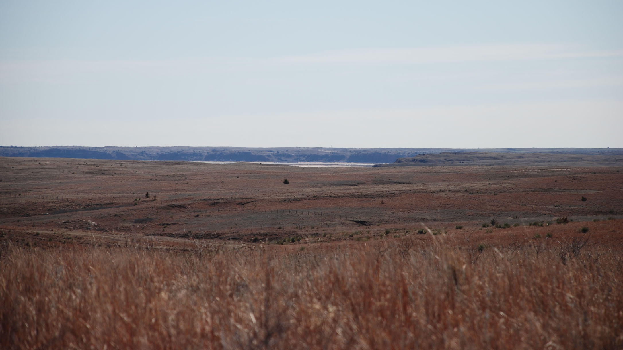 Cimarron Bluff WMA covers 3,590 acres in northeastern Harper County. Located north of the city of Woodward. It is four miles south of the junction of Highways 34 and US 64 and then one and a half miles east on County Road 15 (it may not be labeled) to one of the parking areas. Cimarron Bluff WMA is primarily rolling hills with high bluffs overlooking the west side of the Cimarron River.  The area is dominated by mixed-grass prairie vegetation with isolated pockets of sand sagebrush, sand plum, and sumac occurring on red clay and gypsum soils. Cottonwood, hackberry, and western soapberry trees exist along the creeks flowing through the property. A limited amount of Cimarron River flood plain exists along the east boundary of the WMA, dominated by salt flats, interspersed with salt cedar.