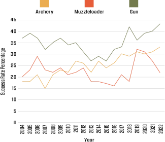 See Figure 2 for a look at the success rates among the various hunting methods. Figure 3 shows each individual method and that method’s percentage of the 2022-23 total harvest.