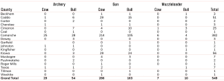 Table 4: Elk Harvest by County, Sex, and Method