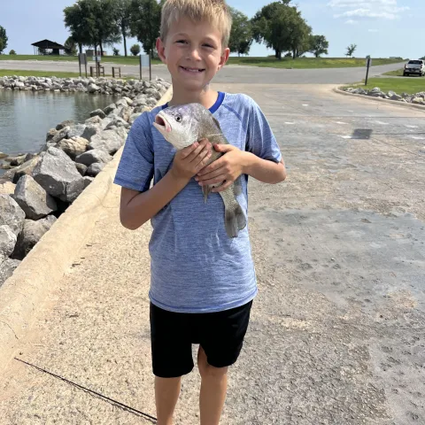 The ramp below the spillway leads to a concrete slab for angling within the spilling basin. Canadian Recreation Authority has a concrete fishing dock with a sidewalk for easy access. For additional info contact Blaine and Dewey Counties (580) 886-2989.