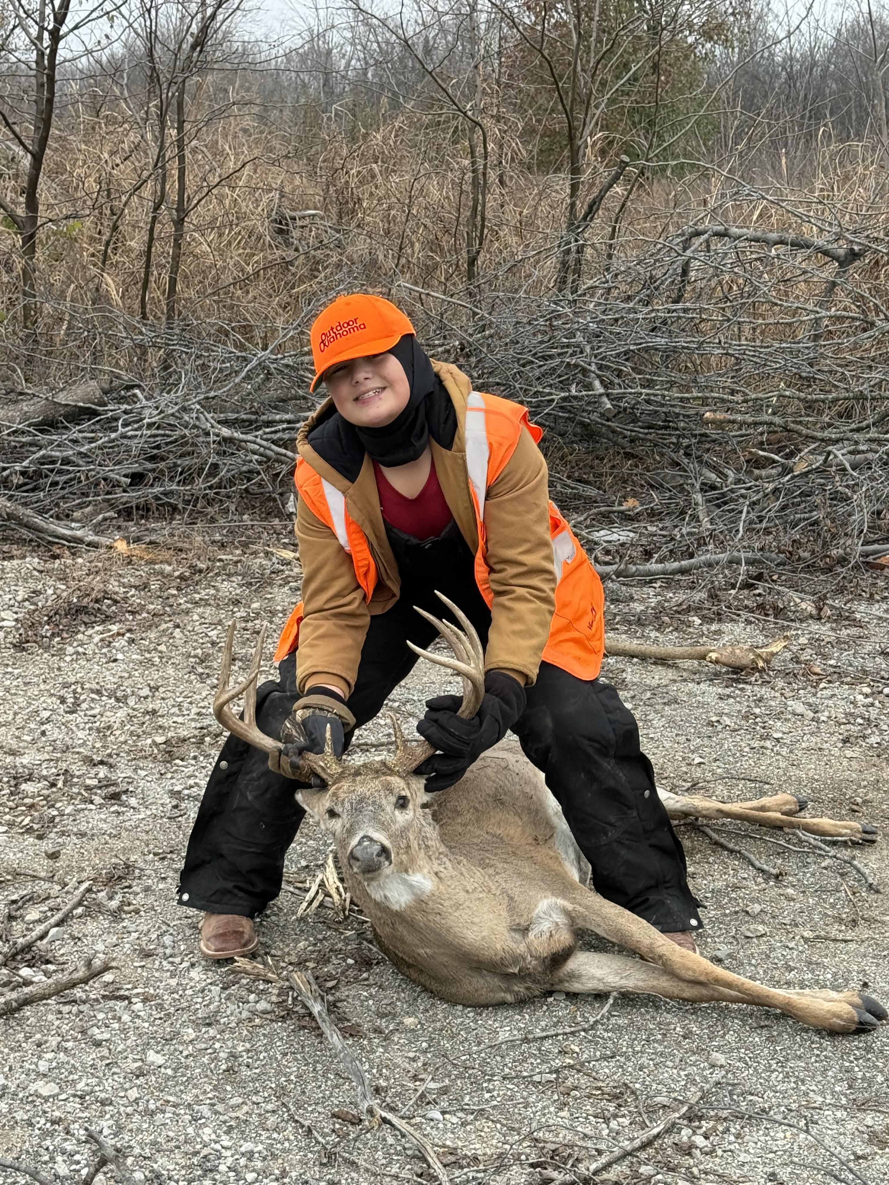 Aidyn Hall with his harvested Oklahoma White-Tailed Deer
