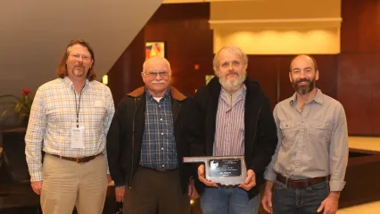 "Oklahoma" award recipient Bill Puckette, third from left, was honored at a recent conference. Also pictured are Craig Davis, Steve Hensley and Richard Stark. Photo provided by The Wildlife Society.