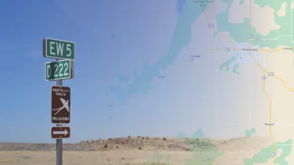 Find your next outdoor travel adventure on the Great Plains Trail of Oklahoma! The trail's 13 highway-based driving loops link area wildlife watching destinations and direct outdoor adventurers to 300 miles of scenic routes that showcase western Oklahoma's natural beauty. Destinations and scenic routes have long been marked with scissor-tailed flycatcher road signs, but travelers can now plan excursions with the Great Plains Trail digital story map, and track their adventures in real time with the Field Maps app (for Apple and Android devices).