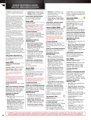 ADDITIONAL INFORMATION • Turkey Spring, Youth Turkey • Quail: Closed during the first allowed in designated areas only