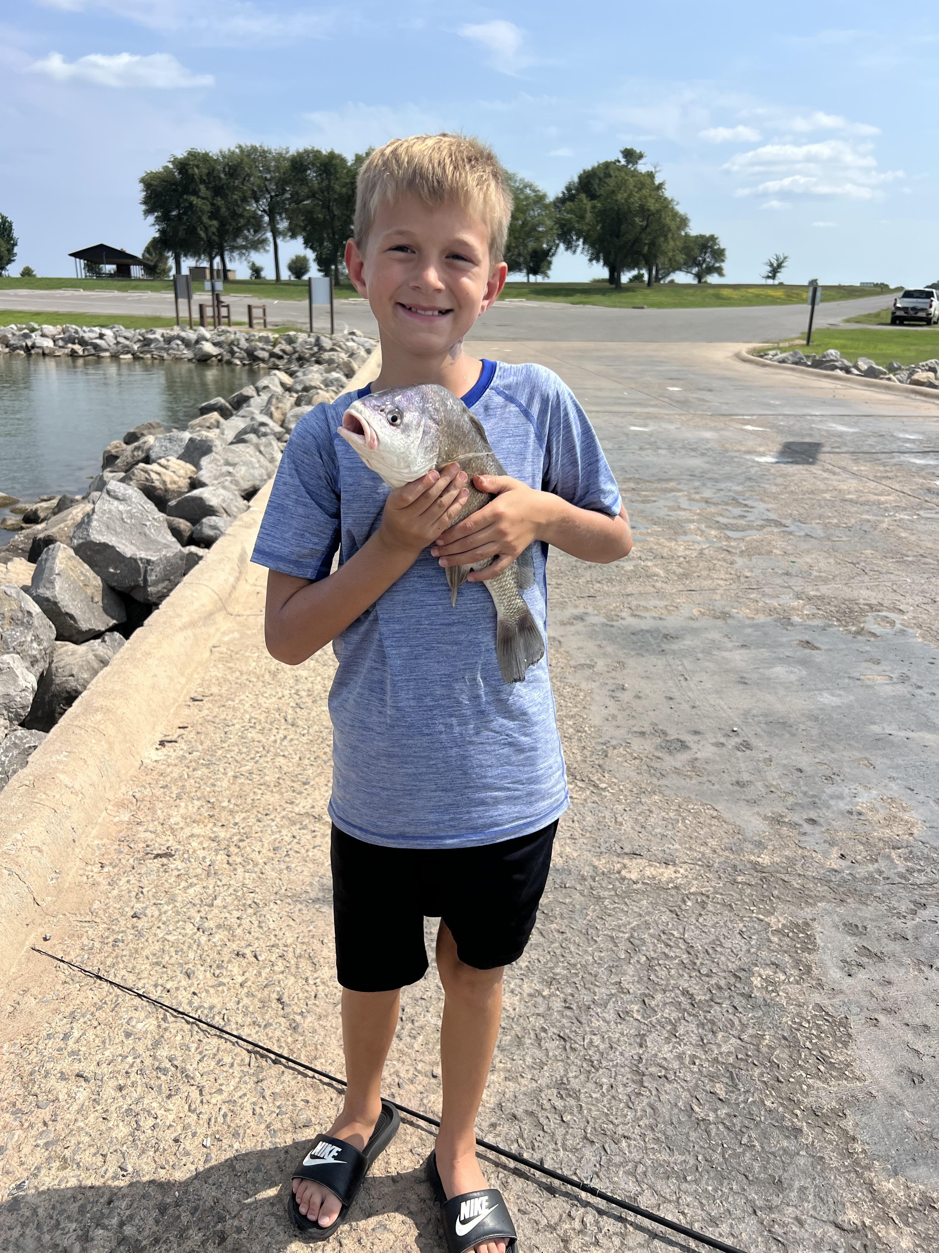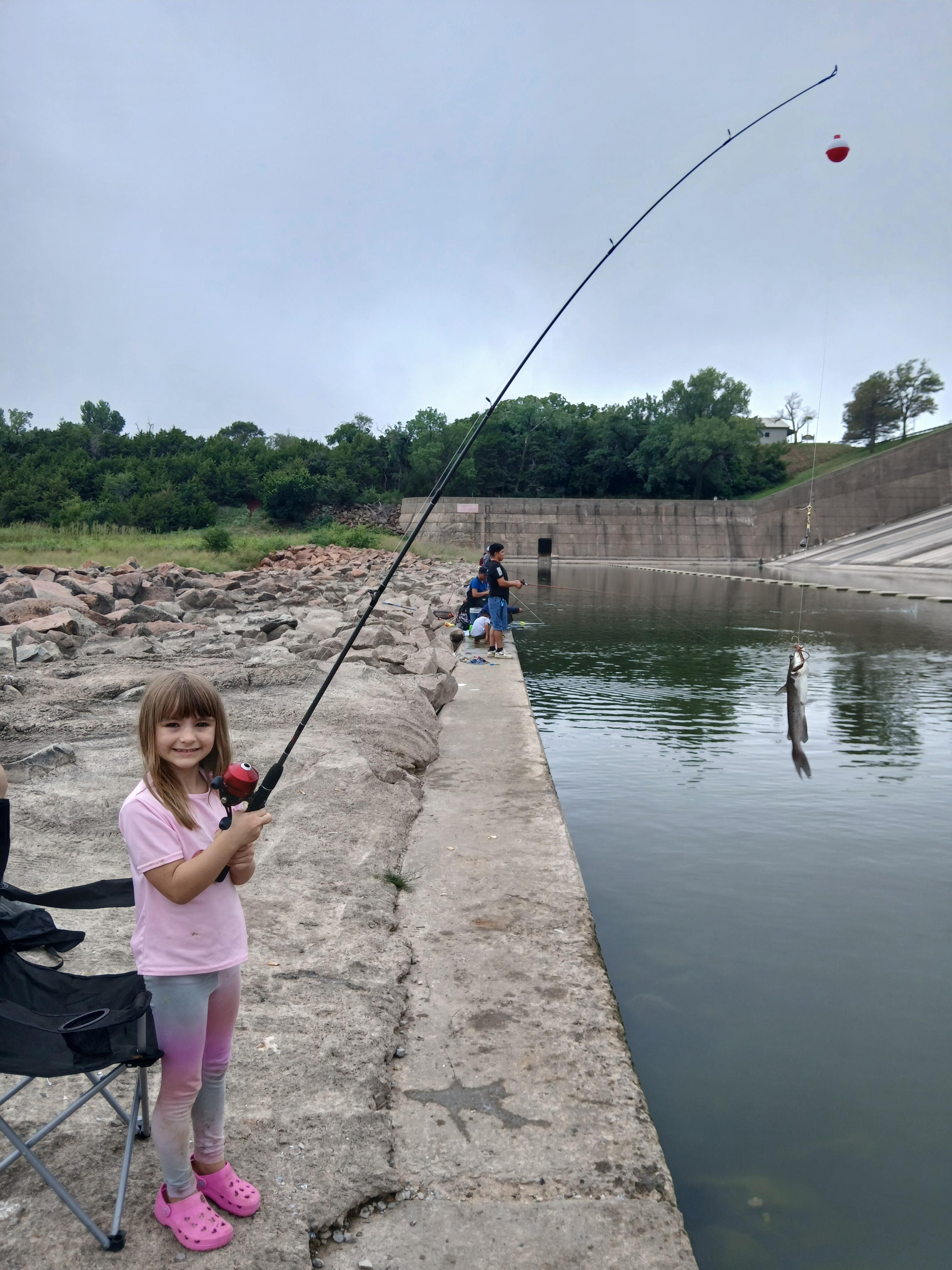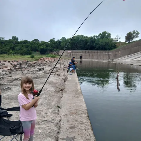 The ramp below the spillway leads to a concrete slab for angling within the spilling basin. Canadian Recreation Authority has a concrete fishing dock with a sidewalk for easy access. For additional info contact Blaine and Dewey Counties (580) 886-2989.