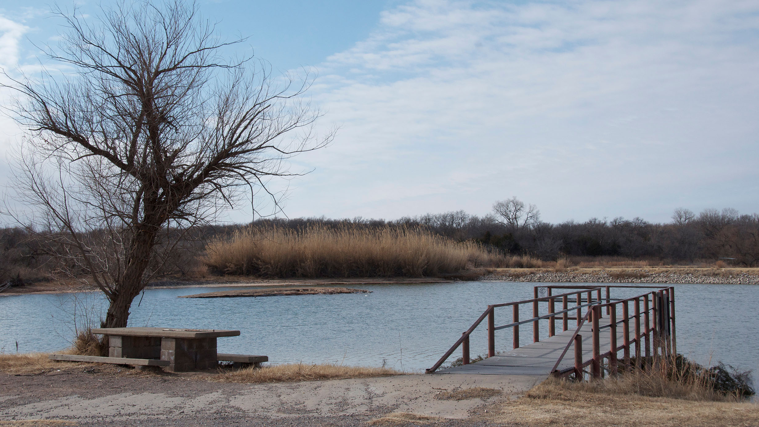 Lake Hall (Google Map) is located in Harmon County, 13 miles north of Hollis (S10, T4N, R26W). Vegetation around the lake is shinnery oak-grassland type.