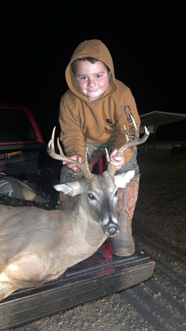 Braxton Peel with his first harvested Oklahoma whitetail deer.