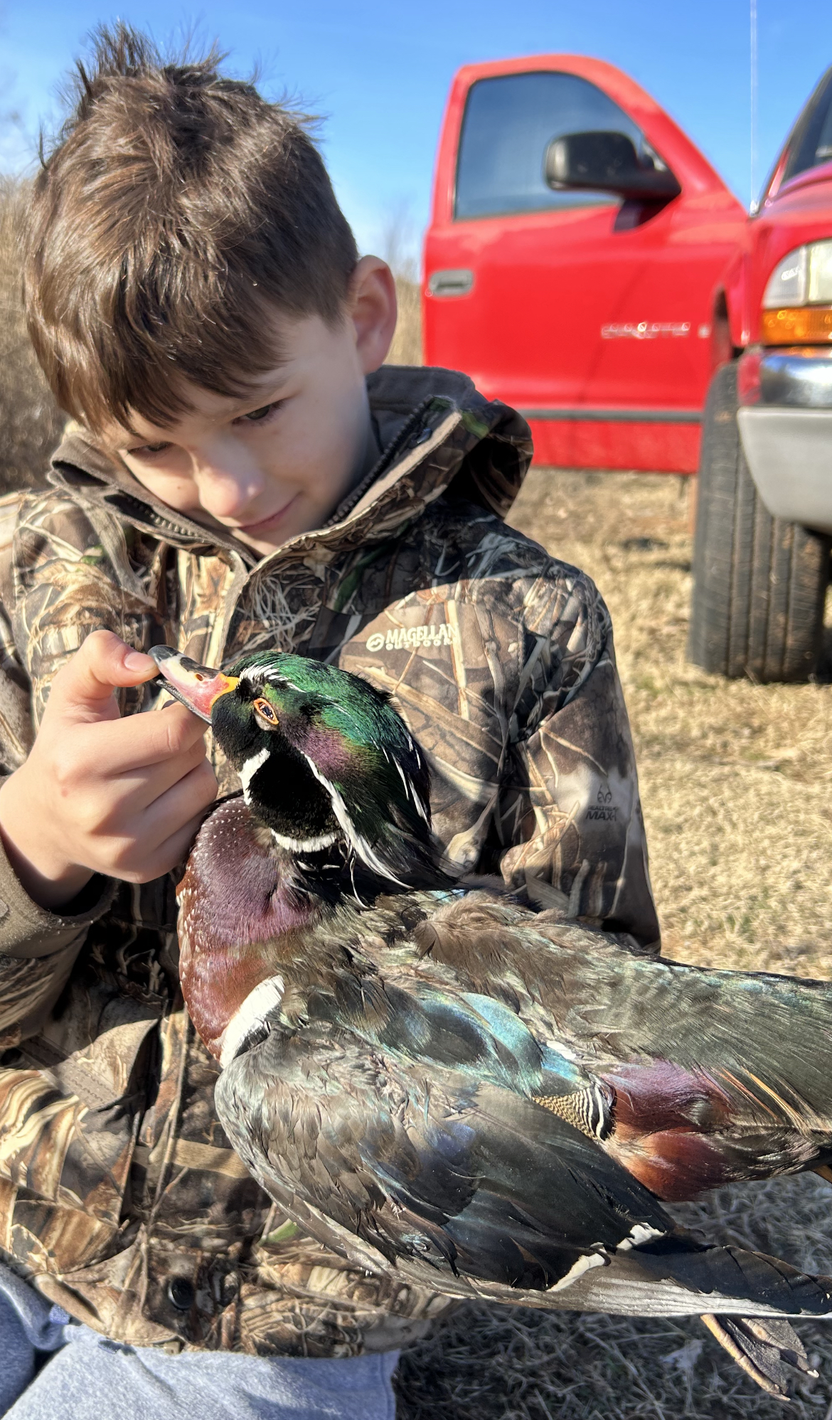 Young waterfowl hunter with Mallard drake