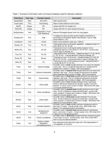 Table 1. Example of information within the feature database used for field data collection.
