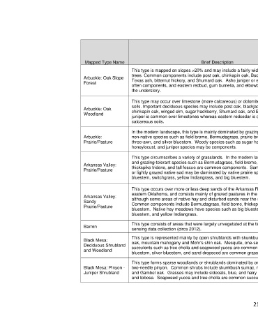 Arbuckle: Oak chinkapin oak, winged elm, sugar hackberry, Shumard oak, and Buckley oak. Ashe 18,594.8 45,948.7 0.103% 8 0