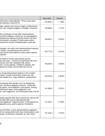 West Gulf Coastal landscape. Common species may include Bermudagrass, little bluestem, prairie broomweed, prairie tea, tall 163,443.4 0.903%