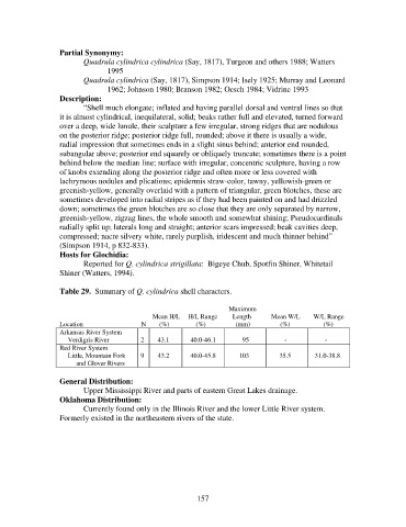Table 29. Summary of Q. cylindrica shell characters.