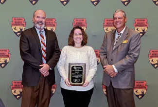 - Recognized several recent national award winners from ODWC: Communication and Education Specialist Blake Podhajsky in TV production from the Outdoor Writers Association of America; Human Dimensions Specialist Betsy York, Special Recognition Award from SEAFWA; Communication and Education Technician Jennifer Benge, Gold Award for diversity and inclusion efforts from SEAFWA.