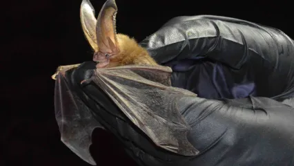 The Ozark big-eared bat, one of the rarest mammals in the state, can be found in Oklahoma's longest known cave system located on the Ozark Plateau National Wildlife Refuge. (Jena Donnell/ODWC)
