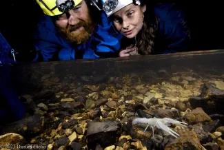 Researchers with the Center for Conservation and Research – San Antonio Zoo observe a state-endangered Oklahoma cave crayfish.