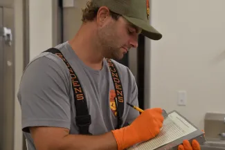 Fisheries technician Matt Pallett collected data about each fish, including its weight, standard measurements, and sex, along with the number of each species of fish harvested. These data will help biologists better understand the potential impacts of bowfishing on the native nongame fish population.