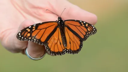 Milkweed plants are especially important for caterpillars, but adult butterflies feed on nectar from flowering plants like goldenrod, asters and gayfeather. Two distinct populations of monarchs can be found in the United States. The western migratory population breeds in the western United States and Canada and winters near the California coast. Monarchs found in Oklahoma belong to the eastern migratory population. This population breeds in the central and eastern United States and southern Canada and winters in Mexico. Some butterflies in the eastern population migrate over 2,000 miles! The monarch is the only butterfly to make such a long two-way migration.